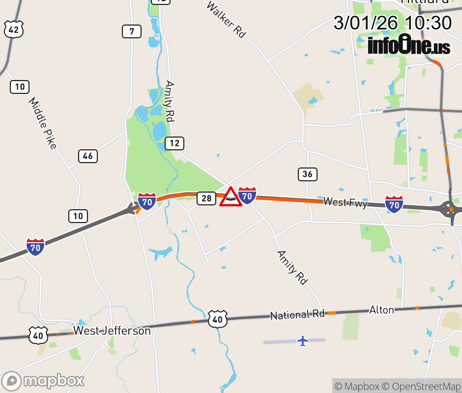 The right shoulder is blocked on I-70 East beyond SR-142/Plain City, due to a crash. Updated: Sun 3/1/26 10:30 AM EST ![]() Updated: Sun 3/1/26 10:30 AM EST |