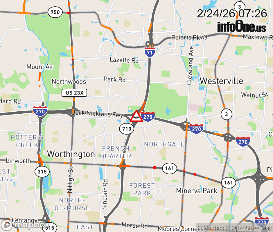 Expect lane closures on Ramp I-71 South to I-270 East, due to a crash. ![]() |