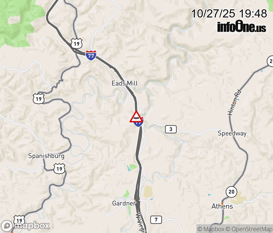 Canceled 10/27/25 8:36 PM Location: I-77 at MM 16.5, WV Accident.