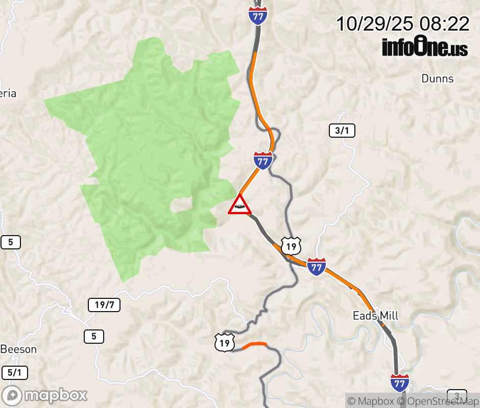 Canceled 10/29/25 9:12 AM Location: I-77 at MM 21.0, WV Accident.