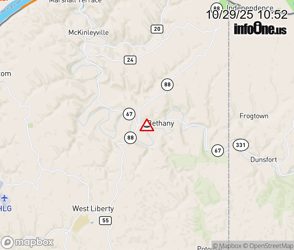 Vehicle Crash on WV-67 (6300 BLK of Main St) in Bethany. The westbound road is closed. The eastbound road is closed. Updated: Wed 10/29/25 10:52 AM EDT ![]() Updated: Wed 10/29/25 10:52 AM EDT |