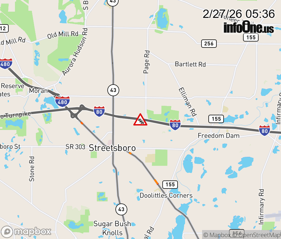 Expect lane closures on I-80 East (Ohio Turnpike) beyond I-480/SR-14, due to a fire. ![]() |