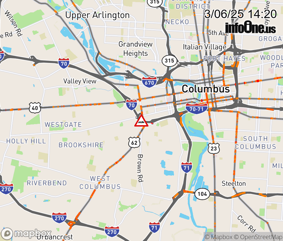 The right shoulder is blocked on I-70 East beyond US-40/ W Broad St, due to a disabled vehicle. Updated: Thu 3/6/25 2:20 PM EST ![]() |