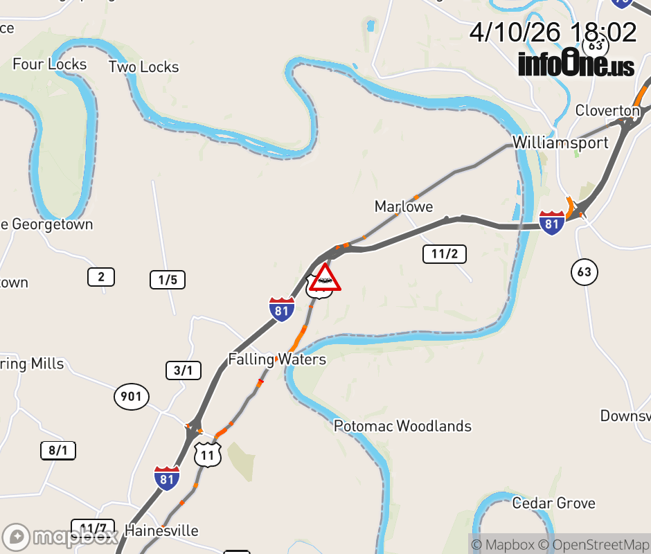 Vehicle Crash on US-11 (8200 Blk Williamsport Pk). The northbound road is closed. The southbound road is closed. ![]() |