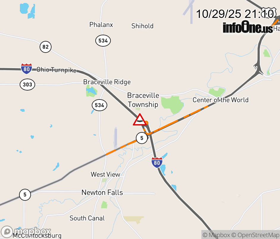 Expect lane closures on I-80 West (Ohio Turnpike) beyond SR-5, due to a crash. ![]() |