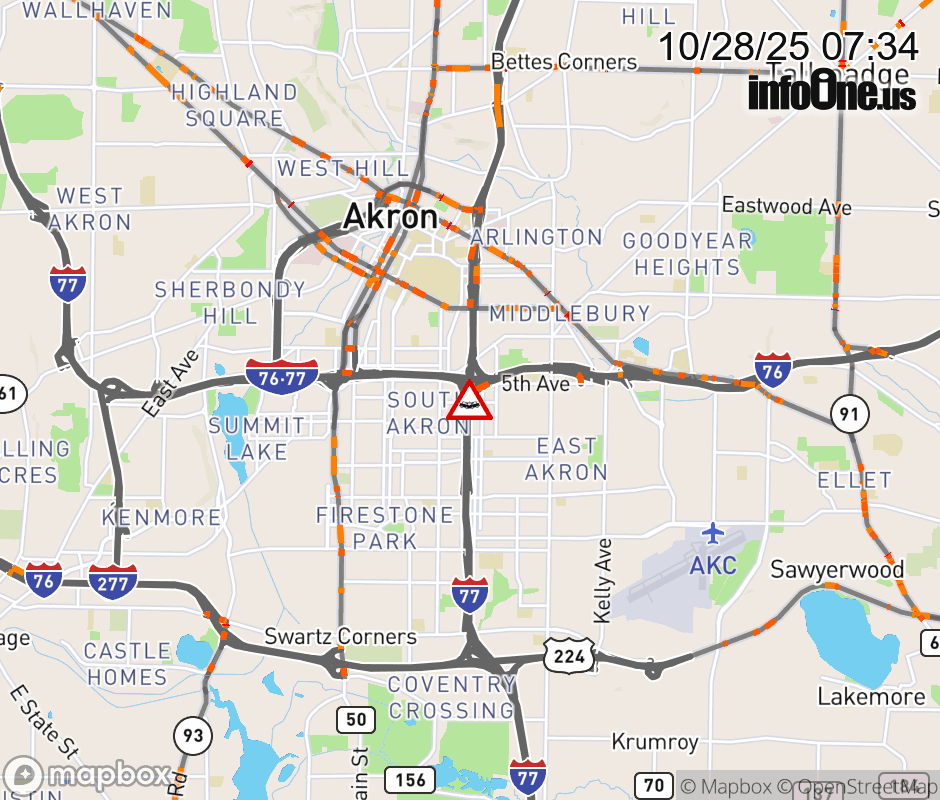 The left lane is blocked on Ramp I-77 North to I-76 East, due to a crash. ![]() |