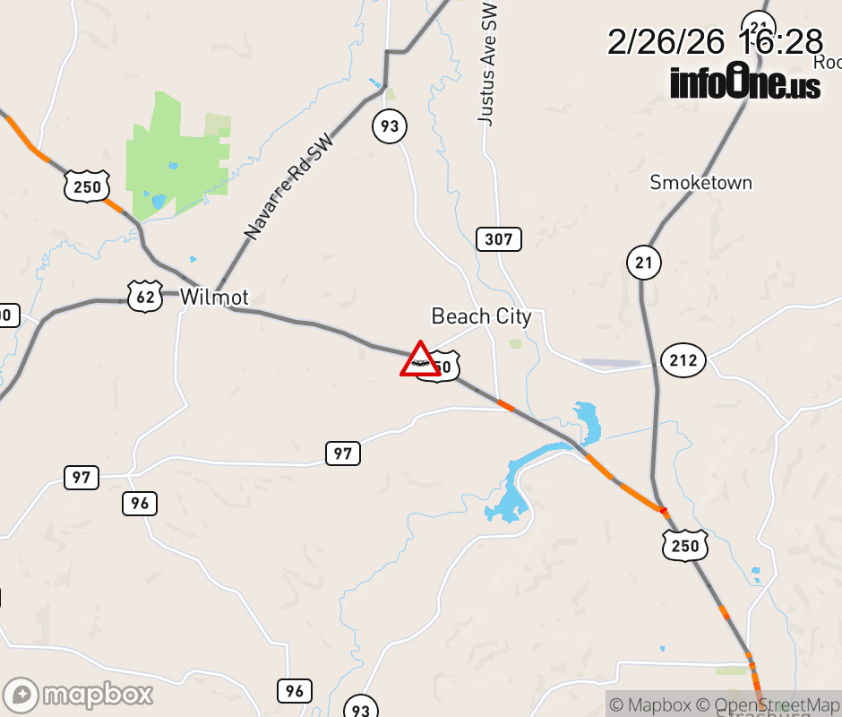 US-250 CLOSED in BOTH DIRECTIONS from Dolphin St Sw to 0.6 miles beyond Chestnut Ridge Rd Nw (MM: 3.5), due to crash. Use alternate route. ![]() |