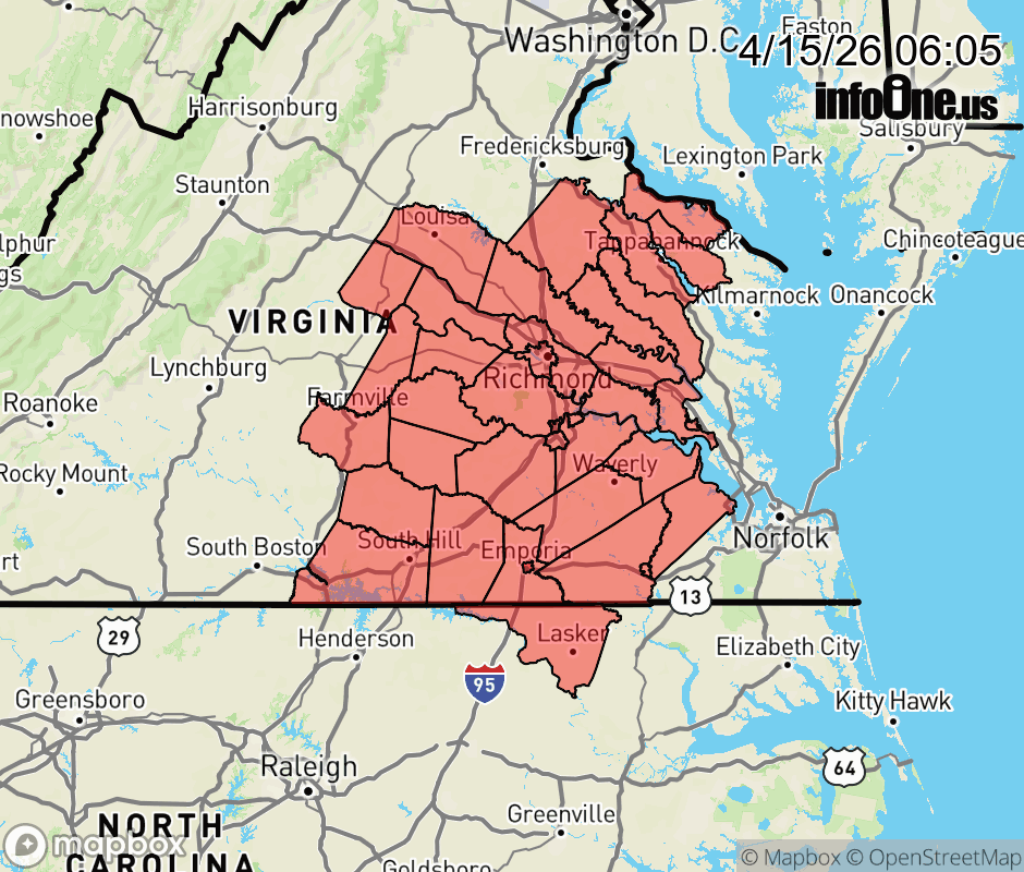 Canceled 4/15/26 8:00 PM Special Weather Statement issued April 15 at 6:03AM EDT by NWS Wakefield VA The combination of low relative humidity values in the 25 to 30 percent range, dry fuels, and SW winds gusting up to around 20 mph will result in an increased risk for the rapid spread of wildfires across much of central and eastern Virginia, including the Richmond metro area. In addition, this statement also includes Northampton County, North Carolina. Residents are urged to exercise caution handling any potential ignition source, including machinery, cigarettes, and matches. Be sure to properly discard all smoking materials. Any dry grasses and tree litter that ignite will have the potential to spread quickly. Virginia residents are reminded that open burning is prohibited before 4 PM EDT each day through April 30th. A statewide burn ban issued by the North Carolina Forest Service is currently in place. Open burning of any kind is illegal. ![]() |