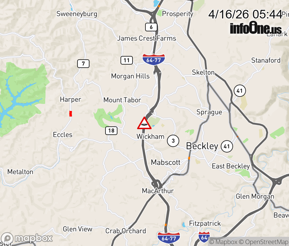 Canceled 4/16/26 6:16 AM Location: I-77 at MM 44.0, WV Accident.