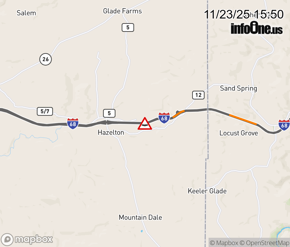Canceled 11/23/25 6:18 PM Location: I-68 at MM 30.0, WV Accident.