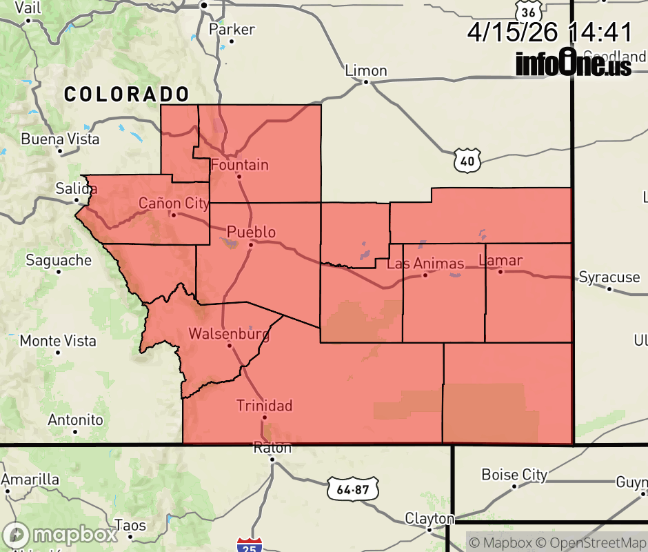 Canceled 4/15/26 10:40 PM Freeze Watch issued April 15 at 12:40PM MDT until April 18 at 8:00AM MDT by NWS Pueblo CO * WHAT... Sub-freezing temperatures as low as 13 possible. * WHERE... All lower elevation plains locations to include the I-25 corridor and Colorado eastern plains. * WHEN... From late Friday night through Saturday morning. * IMPACTS... Frost and freeze conditions could kill crops, other sensitive vegetation and possibly damage unprotected outdoor plumbing. ![]() |