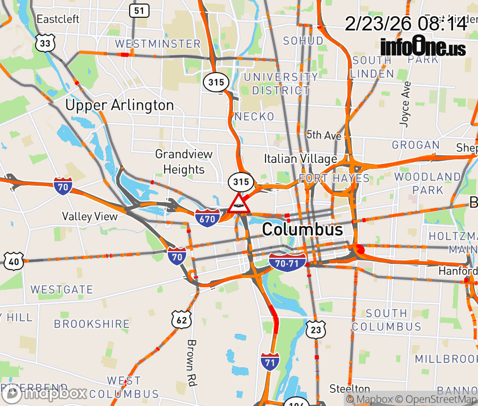 The left lane is blocked on I-670 West beyond SR-315 South, due to a crash. ![]() |