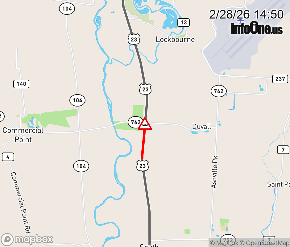 The right lane is blocked on US-23 North at SR-762, due to a crash. Updated: Sat 2/28/26 2:50 PM EST ![]() Updated: Sat 2/28/26 2:50 PM EST |