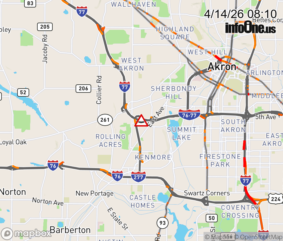 The right shoulder is blocked on I-76 East at I-77/I-76, due to a crash. ![]() |