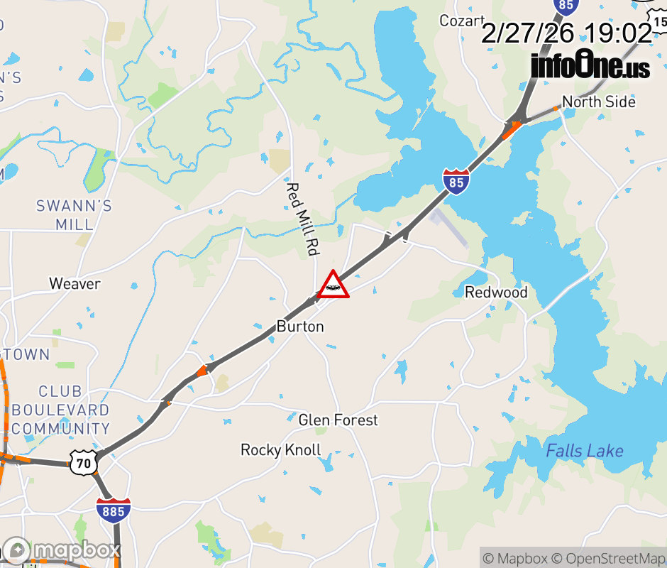 Canceled 2/27/26 8:02 PM Location: I-85N at MM 182, NC Vehicle Crash.