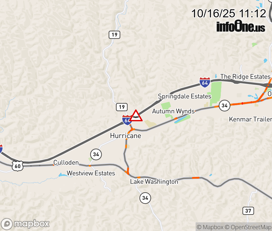 Canceled 10/16/25 1:02 PM Location: I-64 at MM 0.0, WV Accident.
