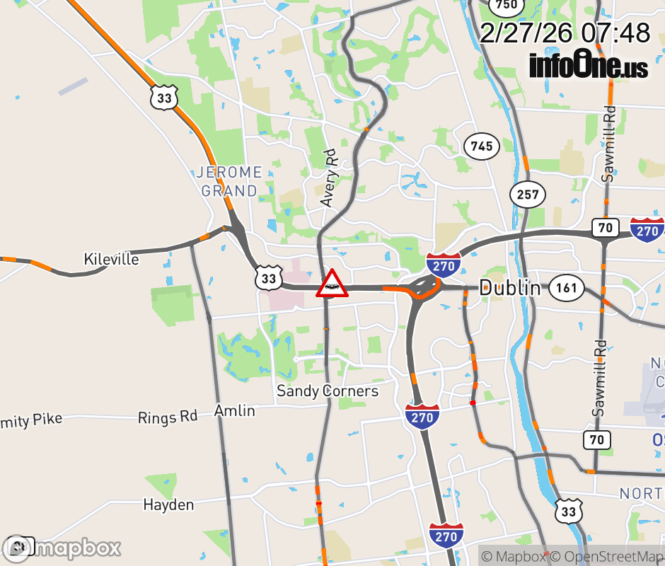 Expect lane closures on Ramp US-33/SR-161 West to Avery Muirfield Dr, due to a crash. ![]() |