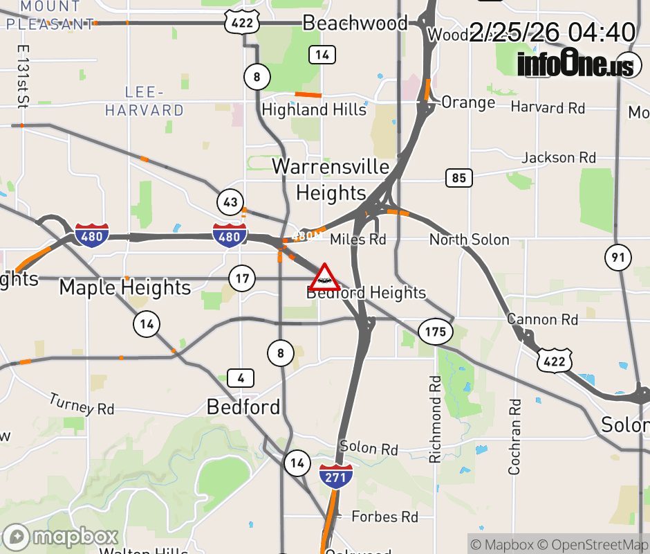 Canceled 2/25/26 4:52 AM Location: I-480 East at MM 27.4, OH Accident.
