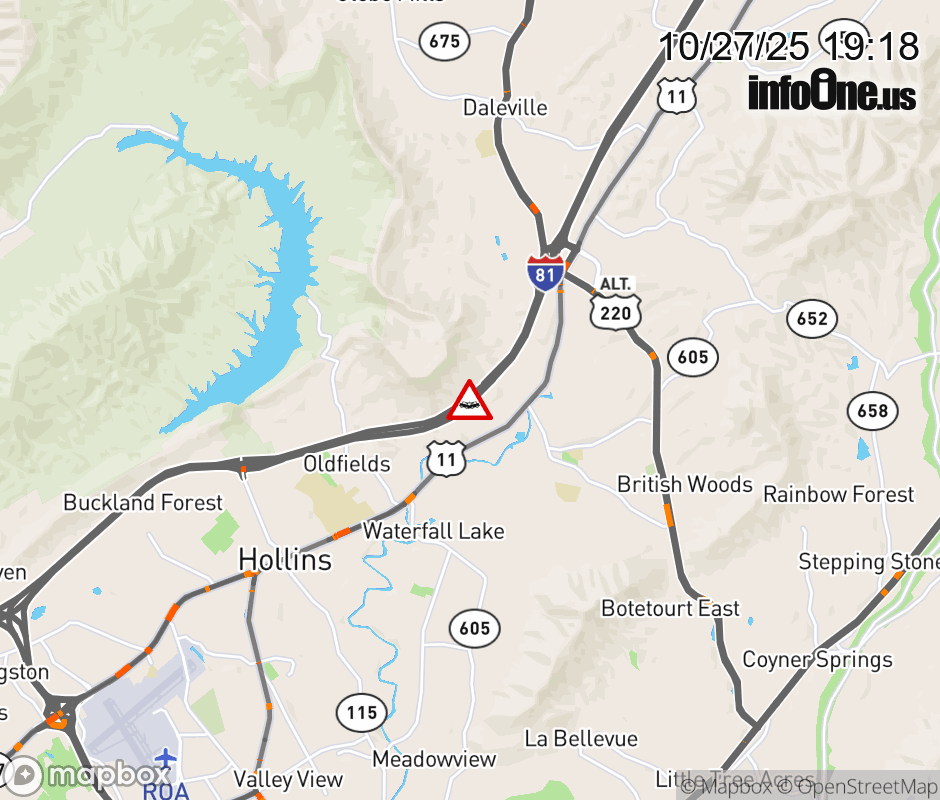 On I-81 at mile marker 148.8 in the County of Botetourt, motorists can expect delays due to a vehicle crash. The north left shoulder and left lane are closed. ![]() |