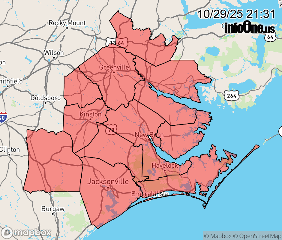 Canceled 10/30/25 3:00 AM Special Weather Statement issued October 29 at 9:29PM EDT by NWS Newport/Morehead City NC Patchy dense fog is developing across Eastern North Carolina this evening and is expected to increase in coverage and density over the next few hours. Visibilites of a half mile or less are possible at times, which may eventually warrant a Dense Fog Advisory. Conditions should improve by 8 AM. Please exercise caution, slow down and use your low beam headlights if travelling. ![]() |