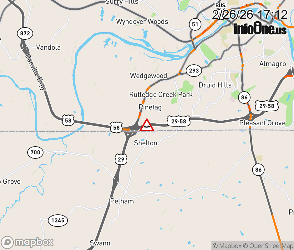 On US-29 South in the County of Pittsylvania, in the vicinity of Ramp Intersection, motorists can expect delays due to a vehicle crash. Lane closures exist. ![]() |