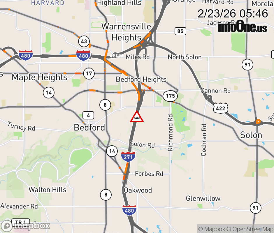 Location: I-271/I-480 North at MM 25.4, OH Accident.