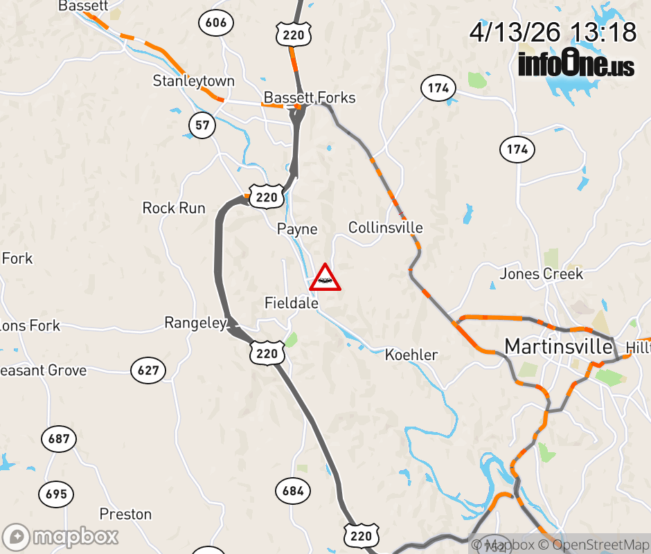 On Rt. 609 North in the County of Henry, in the vicinity of Fred Dr; Hudson Rd; Macarthur Dr, motorists can expect delays due to a vehicle crash. Lane closures exist. Updated: Mon 4/13/26 1:18 PM EDT ![]() Updated: Mon 4/13/26 1:18 PM EDT |