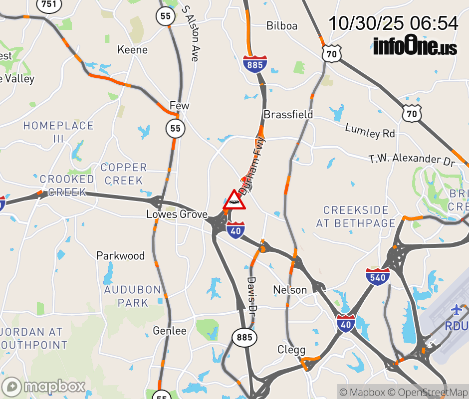 Canceled 10/30/25 7:00 AM Location: I-885S at MM 5, NC Vehicle Crash.