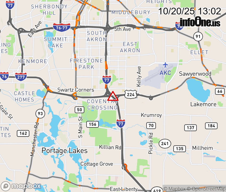 The left lane is blocked on US-224 East at I-277/US-224 East, due to repairs/maintenance. ![]() |