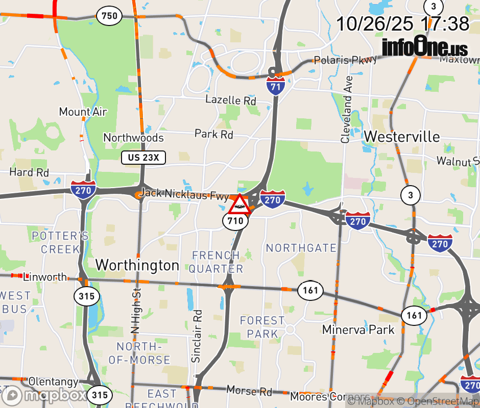 Expect lane closures on Ramp I-270 East to I-71 North (Northside), due to a crash. ![]() |