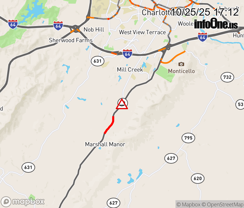 On VA-20 North in the County of Albemarle, in the vicinity of Avon Street Ext; Rt. 742N/S (Albemarle County), motorists can expect delays due to a vehicle crash. Updated: Sat 10/25/25 5:12 PM EDT ![]() Updated: Sat 10/25/25 5:12 PM EDT |
