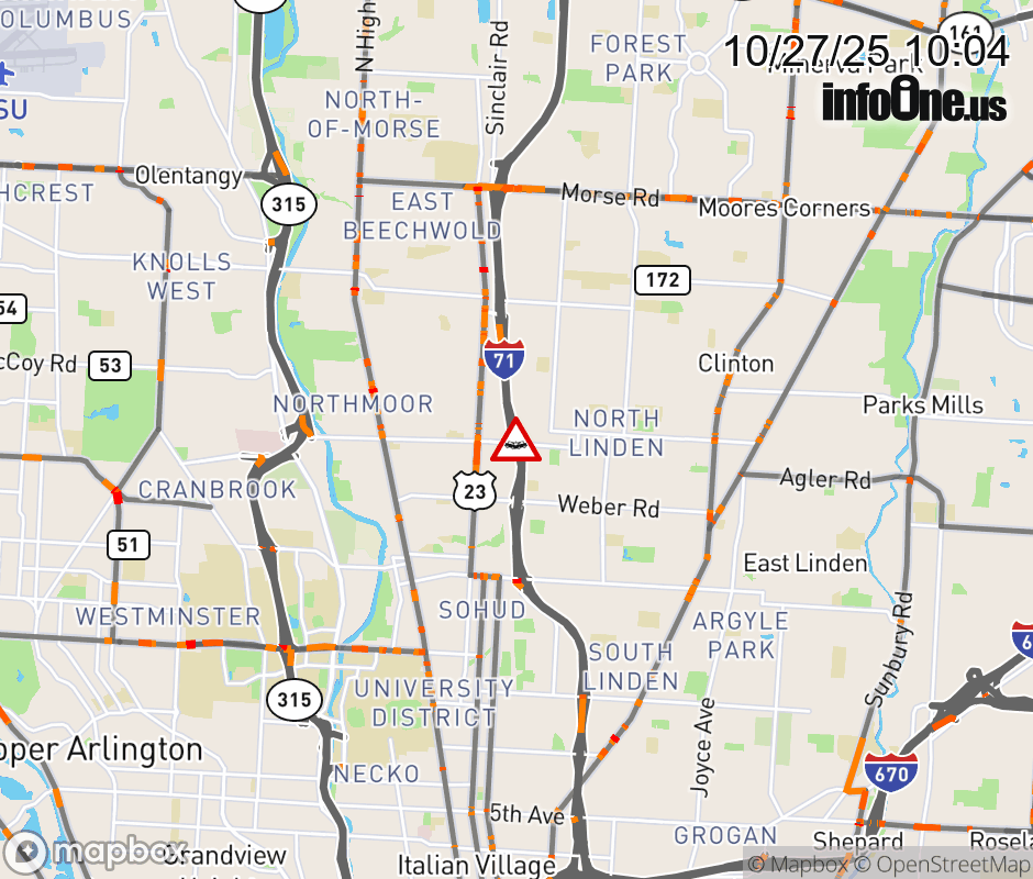The left lane is blocked on I-71 South beyond North Broadway, due to a crash. Updated: Mon 10/27/25 10:04 AM EDT ![]() Updated: Mon 10/27/25 10:04 AM EDT |