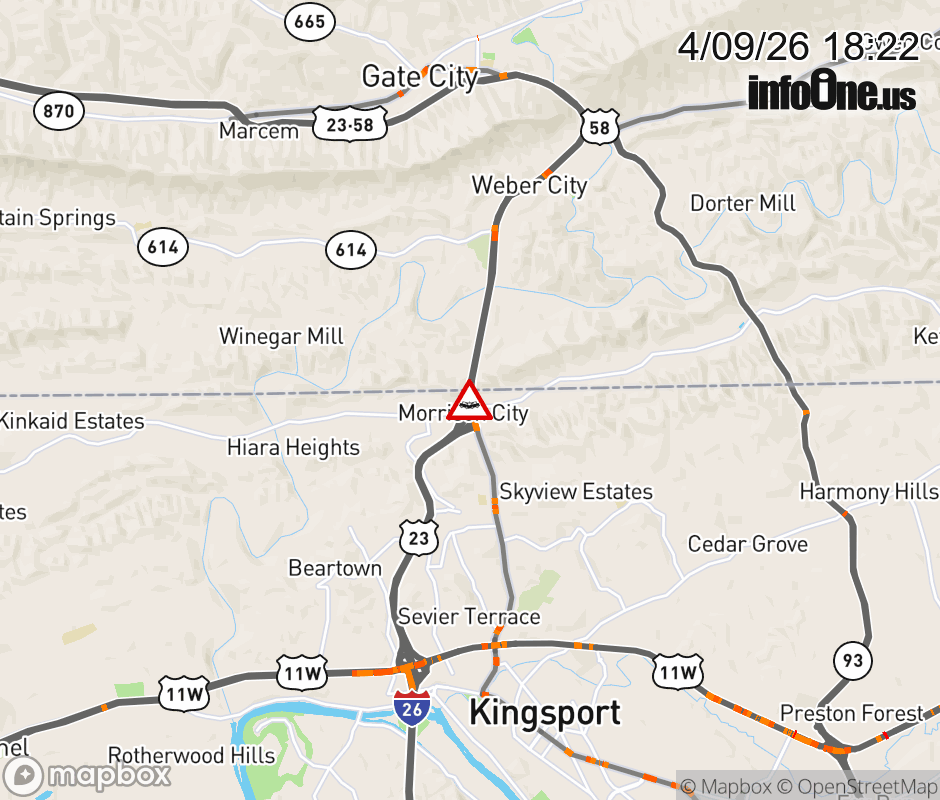 On US-23 South in the County of Wise, in the vicinity of Fishman Rd; Klondike Rd; Rt. 695E/W (Wise County), motorists can expect delays due to a vehicle crash. Lane closures exist. ![]() |