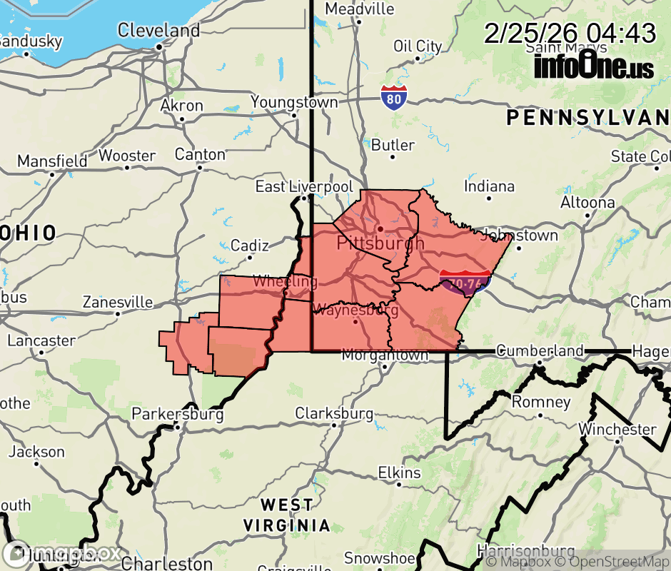 Canceled 2/25/26 8:00 AM Special Weather Statement issued February 25 at 4:41AM EST by NWS Pittsburgh PA Ongoing snow showers could lead to slick spots on area roadways, especially bridges and overpasses, during the early morning commute. The most intense of these showers will lead to quickly coated roadways and areas of greatly reduced visibility. Care should be taken to slow down and increase following distance. ![]() |