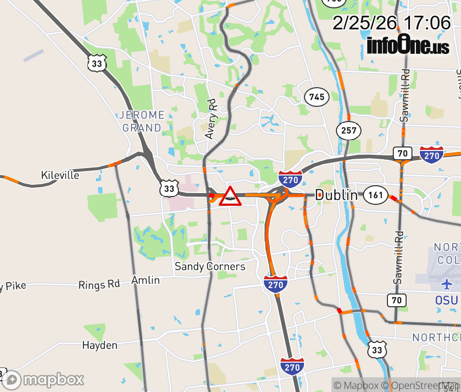 Expect lane closures on US-33/SR-161 East beyond Avery - Muirfield Dr, due to a crash. ![]() |