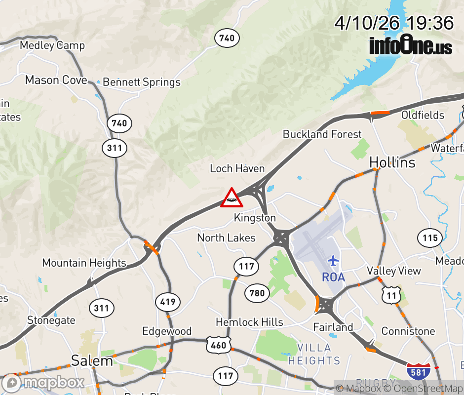 On I-81 at mile marker 143.3 in the County of Roanoke, motorists can expect delays due to a vehicle crash. The south right shoulder is closed. Updated: Fri 4/10/26 7:36 PM EDT ![]() Updated: Fri 4/10/26 7:36 PM EDT |