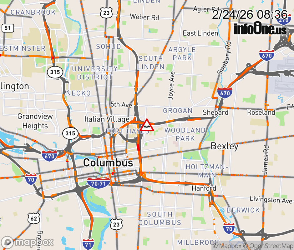 Expect lane closures on I-670 East beyond I-71 South, due to a crash. Updated: Tue 2/24/26 8:36 AM EST ![]() Updated: Tue 2/24/26 8:36 AM EST |