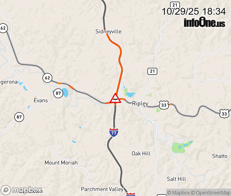 Canceled 10/29/25 7:38 PM Location: I-77 at MM 138.0, WV Accident.