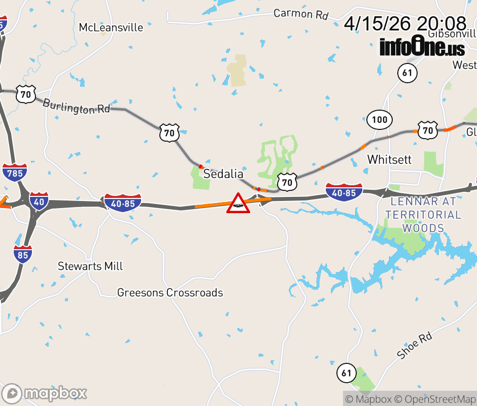 Canceled 4/15/26 8:38 PM Location: I-85N at MM 134, NC Vehicle Crash.