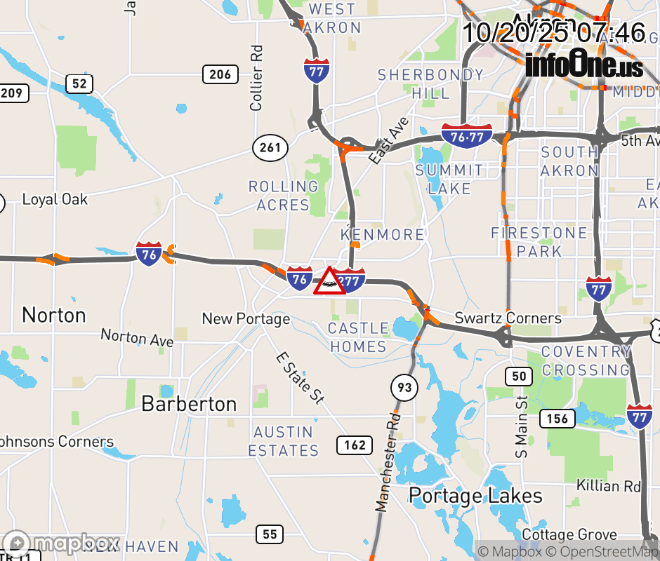 The right shoulder is blocked on I-76/US-224 West at I-277/US-224 West, due to a crash. Updated: Mon 10/20/25 7:46 AM EDT ![]() |