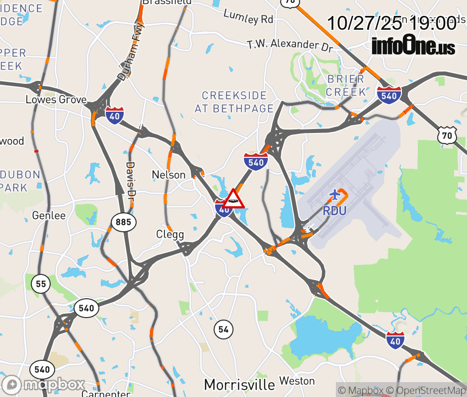 The left shoulder on the ramp has reopened near Exit 283 (I-540). Updated: Mon 10/27/25 7:00 PM EDT ![]() Updated: Mon 10/27/25 7:00 PM EDT |