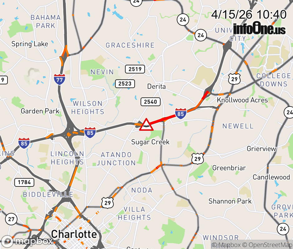 The right lane is closed after Exit 41 (Sugar Creek Rd). Updated: Wed 4/15/26 10:40 AM EDT ![]() Updated: Wed 4/15/26 10:40 AM EDT |