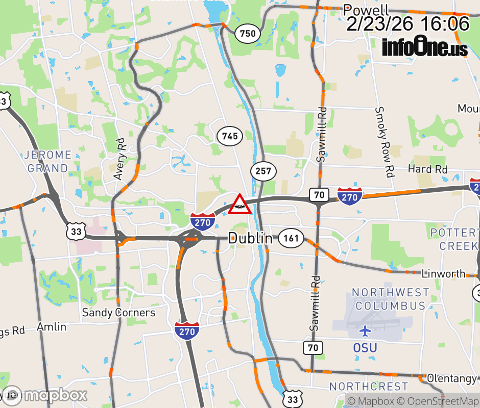 The right lane is blocked on I-270 East beyond US-33/SR-161, due to a crash. ![]() |