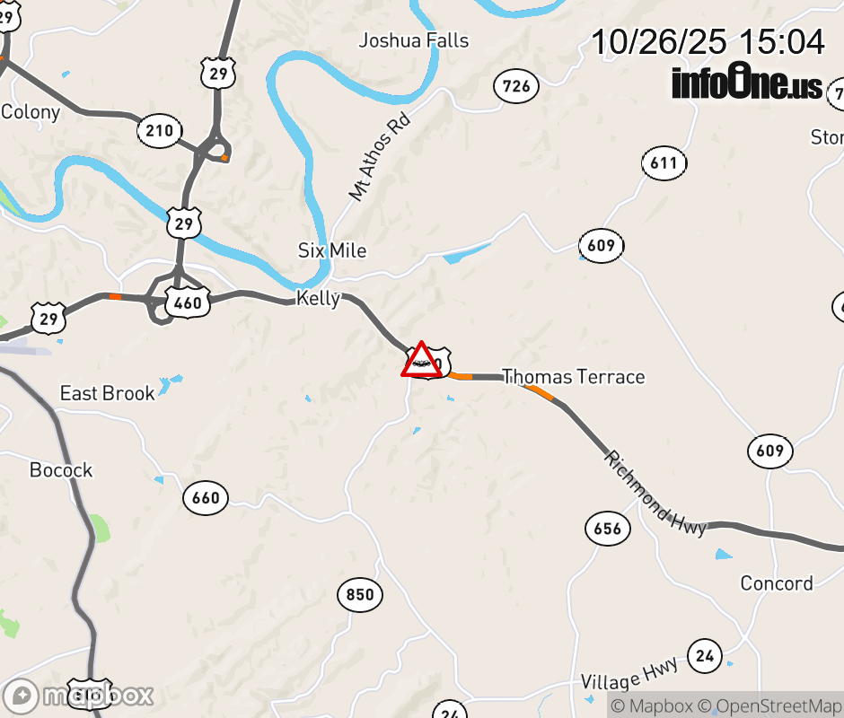 On US-460 in the County of Campbell, in the vicinity of Rt. 662N/S (Campbell County), motorists can expect delays due to a vehicle crash. All west lanes are closed. Updated: Sun 10/26/25 3:04 PM EDT ![]() Updated: Sun 10/26/25 3:04 PM EDT |