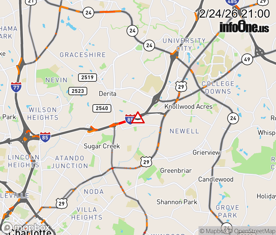 The right shoulder is closed at Exit 42 (US 29). Updated: Tue 2/24/26 9:00 PM EST ![]() Updated: Tue 2/24/26 9:00 PM EST |