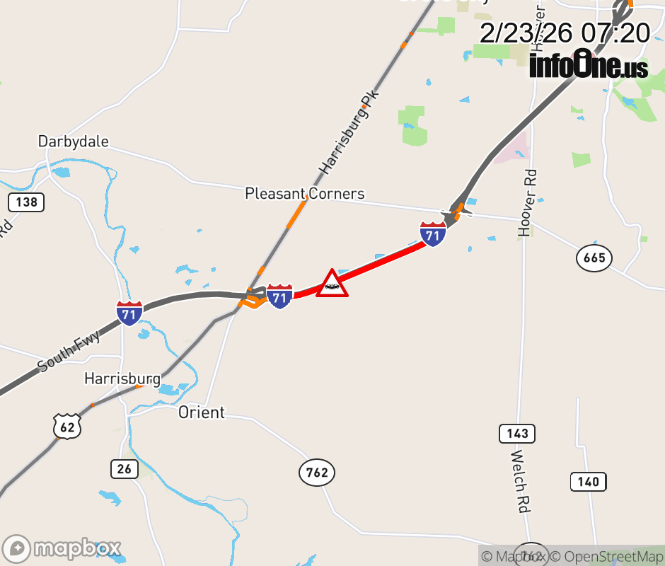 Expect lane closures on I-71 North beyond US-62/SR-3, due to a crash. ![]() |