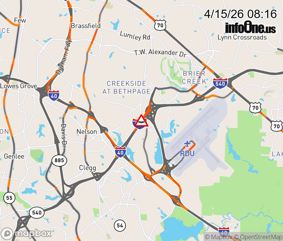 The right shoulder is closed at Exit 2 (Aviation Pkwy). Updated: Wed 4/15/26 8:16 AM EDT ![]() Updated: Wed 4/15/26 8:16 AM EDT |