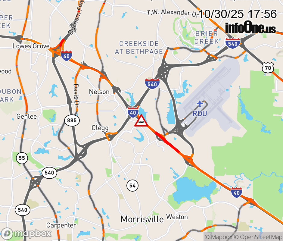 The left shoulder is closed near Exit 283B (I-540). Updated: Thu 10/30/25 5:56 PM EDT ![]() Updated: Thu 10/30/25 5:56 PM EDT |