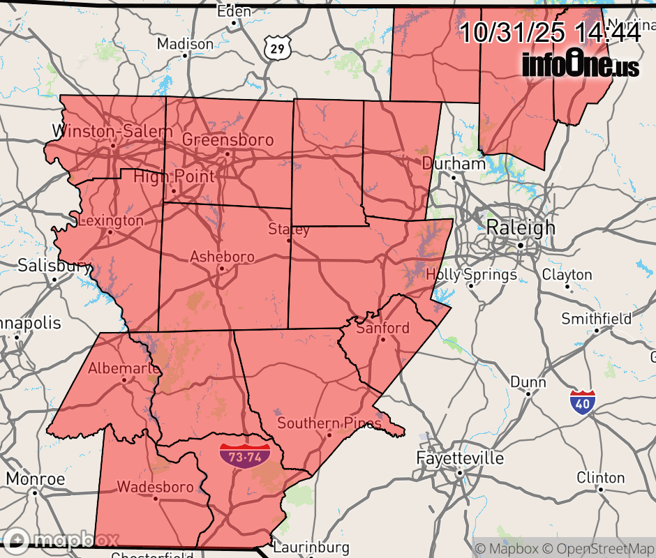 Canceled 10/31/25 9:24 PM Frost Advisory issued October 31 at 2:42PM EDT until November 1 at 9:00AM EDT by NWS Raleigh NC * WHAT... Temperatures in the lower to middle 30s will result in frost formation. * WHERE... A portion of central North Carolina. * WHEN... From 2 AM to 9 AM EDT Saturday. * IMPACTS... Frost could harm or kill sensitive outdoor vegetation or plants if left uncovered. * ADDITIONAL DETAILS... Frost will be more widespread in the typically colder rural and open locations and more limited in urban locations. ![]() |
