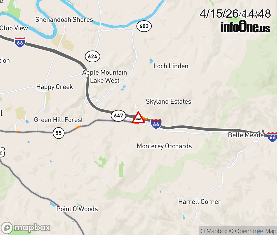 On I-66 at mile marker 13.3 in the County of Warren, motorists can expect delays due to a vehicle crash. The west exit ramp narrows. ![]() |